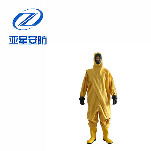 防化服是由防霧視窗及頭罩、連體衣褲、防化膠靴、雙防護(hù)腕、防化手套、雙密封拉鏈及水密封拉鏈組成的連體式服裝,使用時(shí)與正壓式消防空氣呼吸器配合使用。
