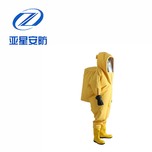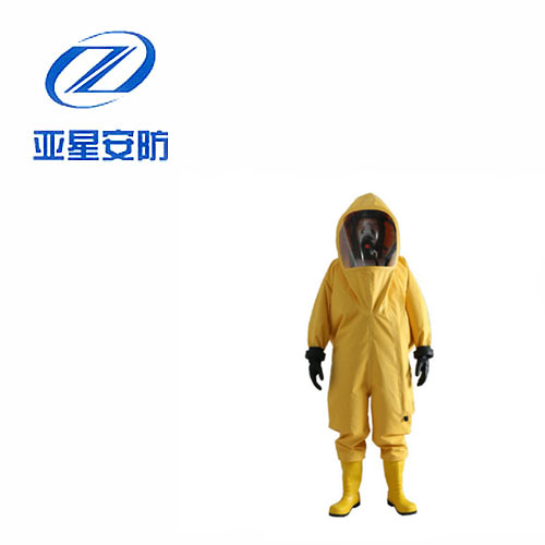 防化服是由防霧視窗及頭罩、連體衣褲、防化膠靴、雙防護(hù)腕、防化手套、雙密封拉鏈及水密封拉鏈組成的連體式服裝,使用時與正壓式消防空氣呼吸器配合使用。