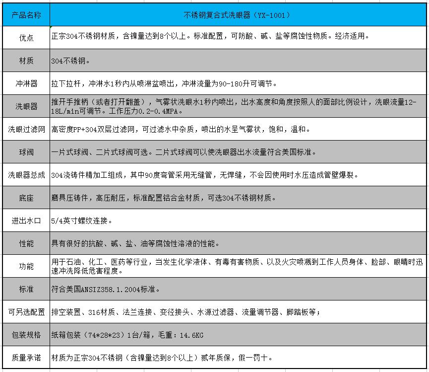 YX-1001不銹鋼復(fù)合式洗眼器